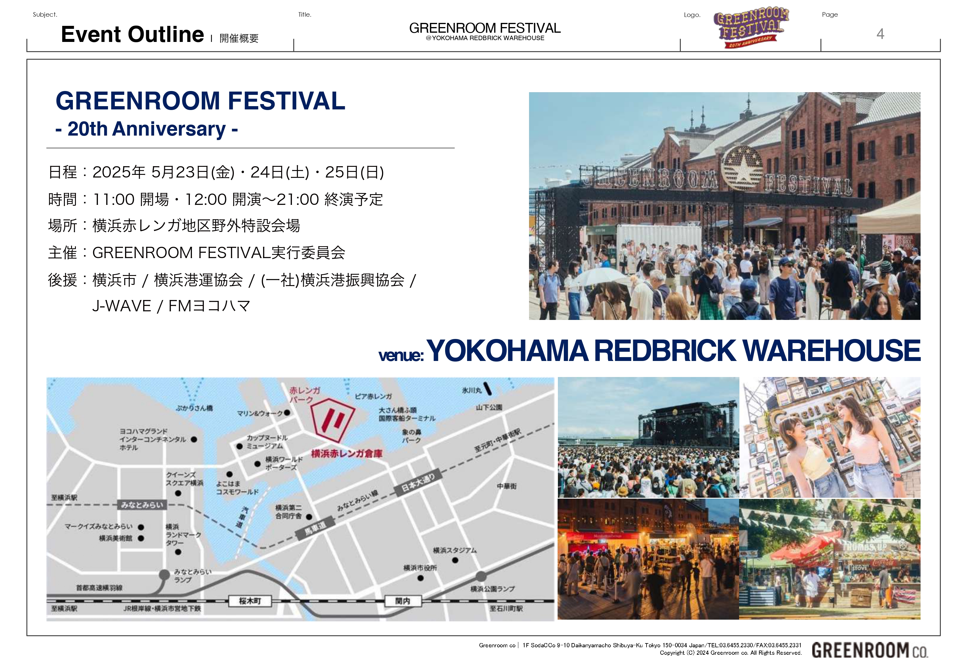 2025年 5月23日(金)・24日(土) ・25日(日)横浜 赤レンガ倉庫で行われる【GREENROOM FESTIVAL 20th Anniversary】に アグリーブースを出展!